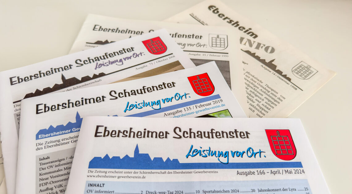 Vor über 25 Jahren wurde das Ebersheimer Schaufenster vom Ebersheimer Gewerbeverein e.V. initiiert und berichtet seitdem regelmäßig über das örtliche Gewerbe in Ebersheim, über Aktivitäten der Vereine und das Geschehen im Ort.